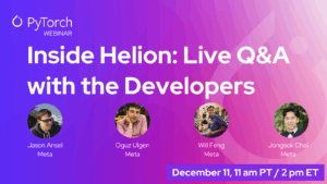 On December 11, PyTorch Foundation hosted “Inside Helion: Live Q&A” with Jason Ansel, Oguz Ulgen, Will Feng, and Jongsok Choi from Meta’s PyTorch Compiler and Helion teams. The session explored Helion’s design philosophy, how it compiles to Triton, its autotuning system, and what’s ahead on the roadmap. Watch here >