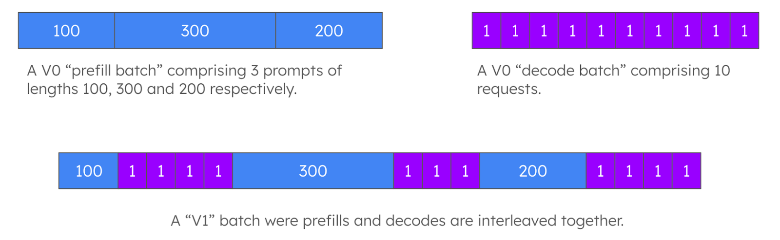 Figure 1: Batches in vLLM V1 compared to batches in vLLM V0.