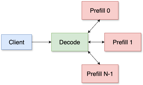 Currently, TP + Disagg is being supported on both prefill and decode sides. There are 3 key components to facilitate optimal P/D disagg serving over TCP network: