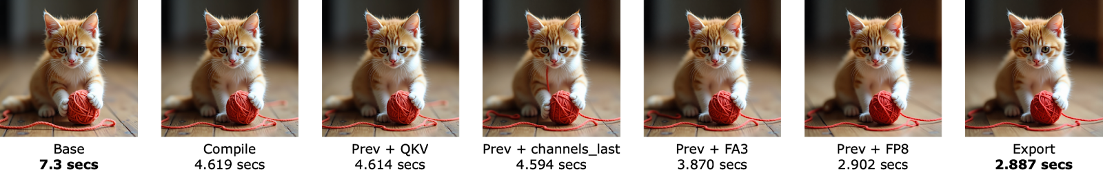 It should be noted that only FP8 quantization is lossy in nature so, for most of these optimizations, the image quality should stay identical. However, in this case, we see very negligible differences in the case of FP8.
