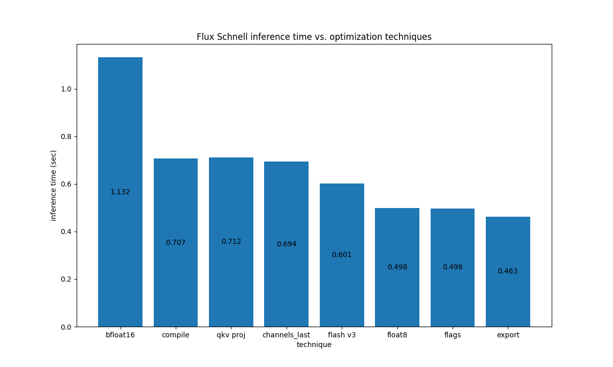 Therefore, it already gives us a reasonable starting point. For this project, we took the same underlying principles used in the diffusion-fast project and applied them to the FluxPipeline. Below, we share an overview of the optimizations we applied (details in the repository):