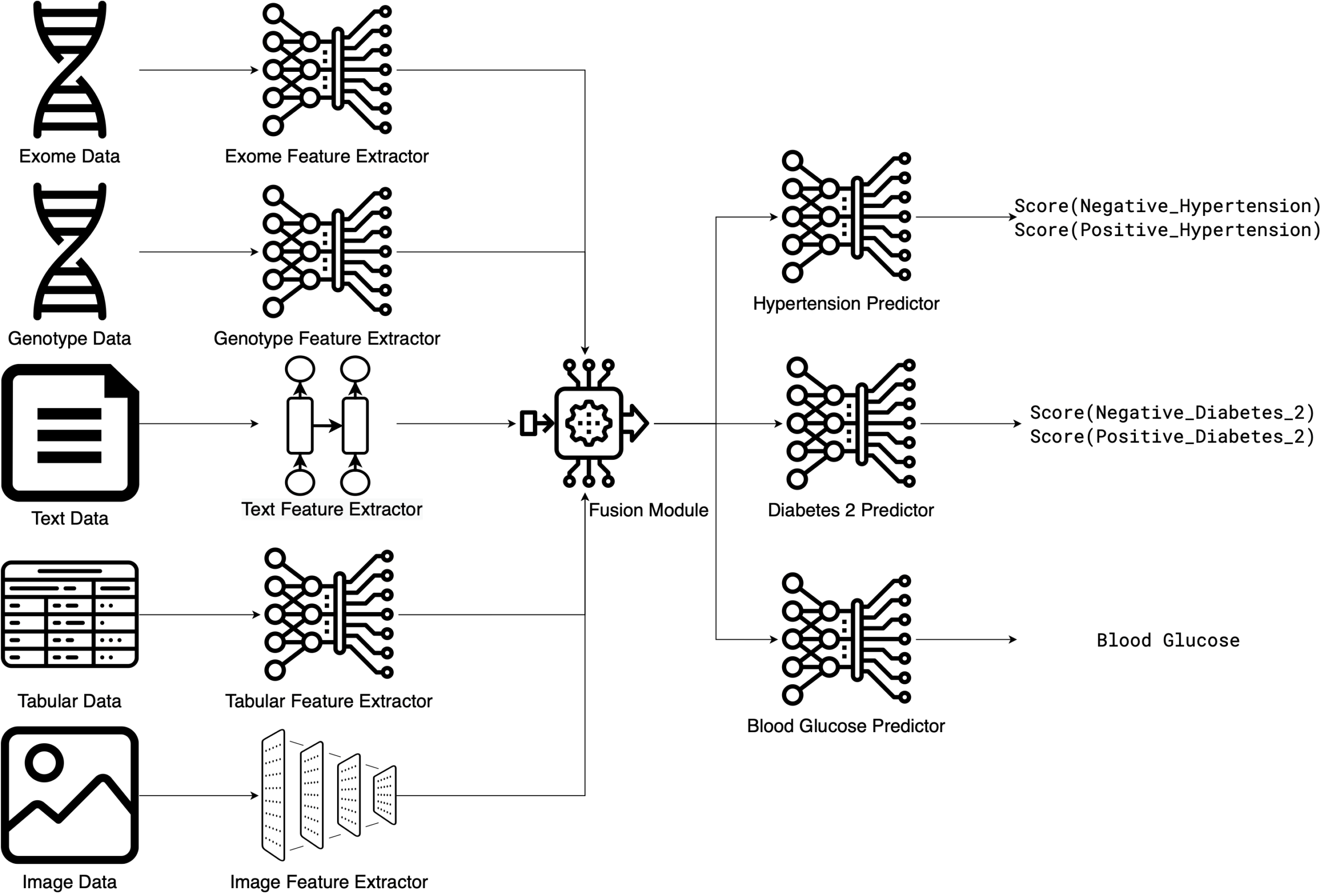 - Multi-modal inputs: Seamless integration of genotype, tabular, sequence, image, array, and binary data.
