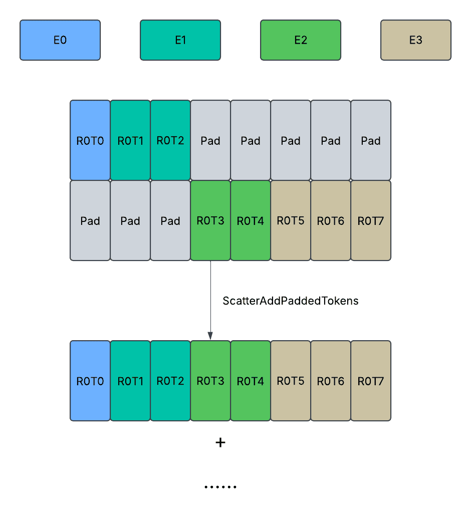 - ScatterAdd (Padded): Scatter adds validate tokens from padded tensors.