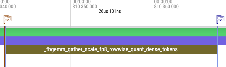 - 4. GatherMul (FP8 Rowwise Quantize): FBGEMM-based gather scaling and quantization. It can be viewed as a fusion of 8 operations: gather (tokens), gather (scores), mul, max, divide, mul, clamp, and typecast.