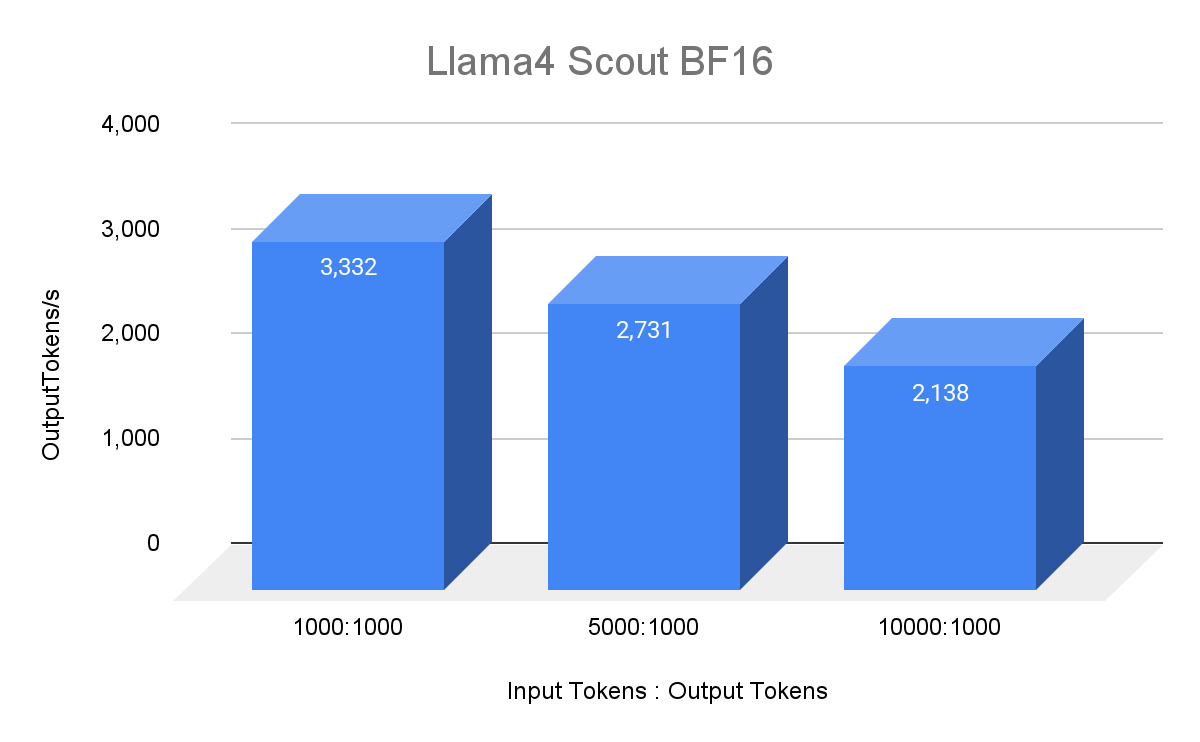 We benchmarked Llama 4 Scout with BF16 precision on all linear layers (attention linear, shared experts, router, and routed experts), attention, and KV cache.