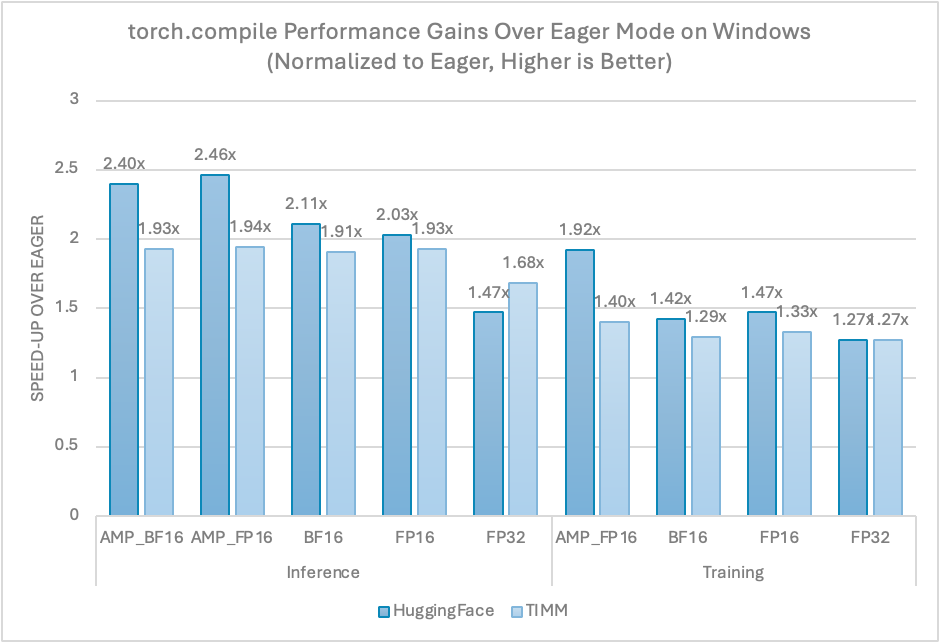 Figure 2. Torch.compile Performance Gains Over Eager Mode on Windows