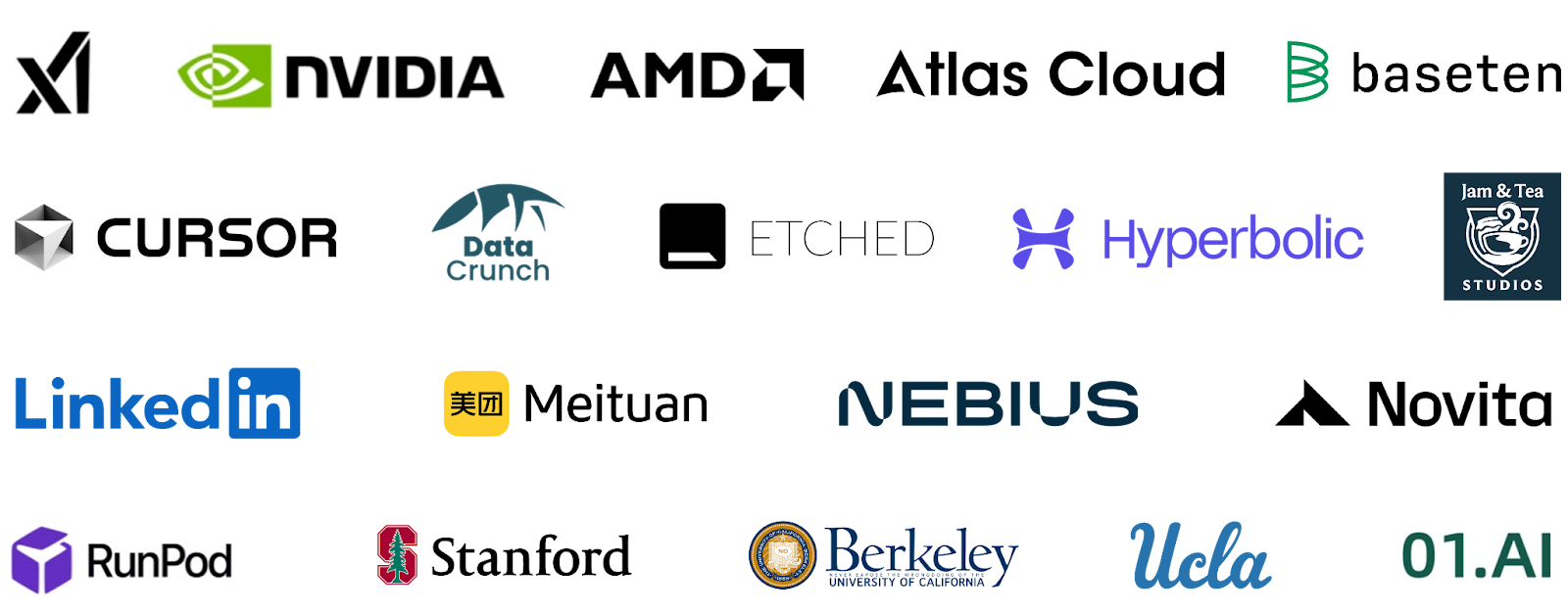 SGLang has been deployed to large-scale production, generating trillions of tokens every day. It has an active community with over three hundred contributors on GitHub. It is supported by the following institutions: AMD, Atlas Cloud, Baseten, Cursor, DataCrunch, Etched, Hyperbolic, iFlytek, Jam & Tea Studios, LinkedIn, LMSYS, Meituan, Nebius, Novita AI, NVIDIA, RunPod, Stanford, UC Berkeley, UCLA, xAI, and 01.AI.