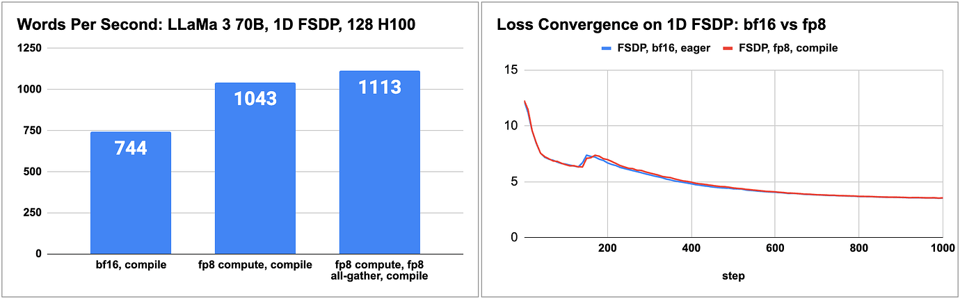 For an e2e example of how to speed up LLaMa 3 70B pretraining by up to 1.5x with float8, see our README, and torchtitan’s blog and float8 recipe.