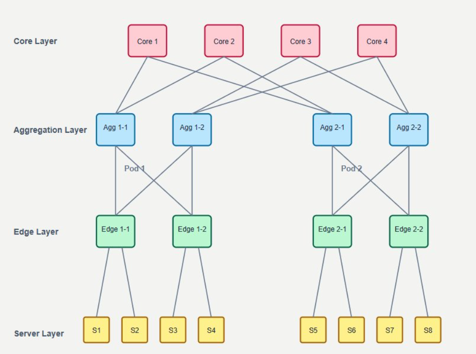 Figure 5: MI325X cluster with 3-layer Fat-Tree network topology