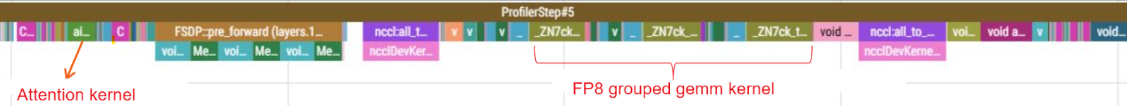 Figure 6: Kernel profiling showing attention kernel and FP8 grouped GEMM kernel optimization targets
