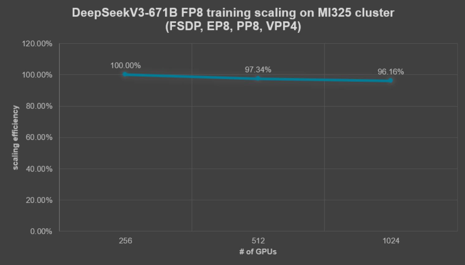 Figure 8: DeepSeekV3-671B scaling efficiency on MI325 cluster
