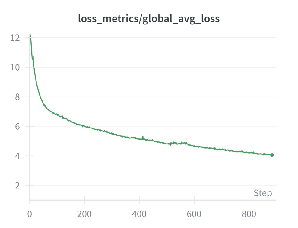 To verify that speed does not compromise quality, we tracked the training loss of DeepSeek-V3 FP8 on 32 MI325X nodes (256 GPUs) using the allenai/c4 dataset. The curve shows smooth, monotonic descent over 900 iterations, matching reference behavior on other platforms and confirming that FP8 kernels, expert routing, and parallel schedules converge as expected.