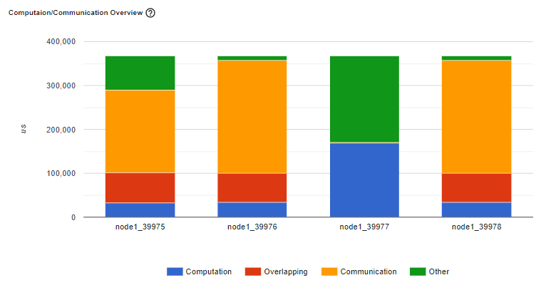 For example, if there is an inefficient workload balance or straggler issue, you’ll be able to identify it in this Synchronizing/Communication view. This view will show several workers’ waiting time being longer than others.