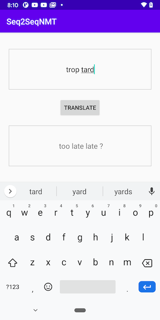 This app demonstrates how to convert a sequence-to-sequence neural machine translation model trained with the code in the PyTorch NMT tutorial for french to english translation.