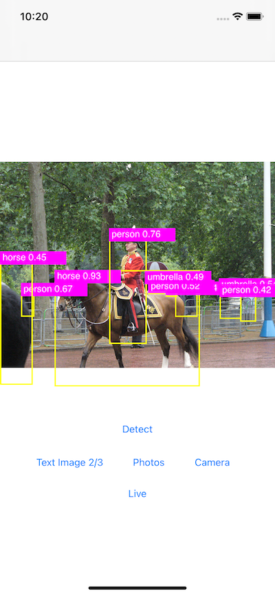 This app demonstrates how to convert the popular YOLOv5 model and use it on an iOS app that detects objects from pictures in your photos, taken with camera, or with live camera.