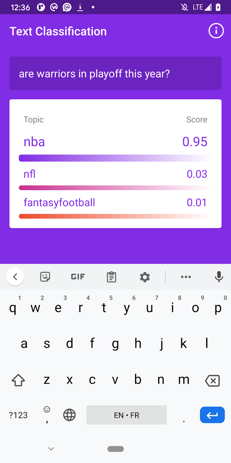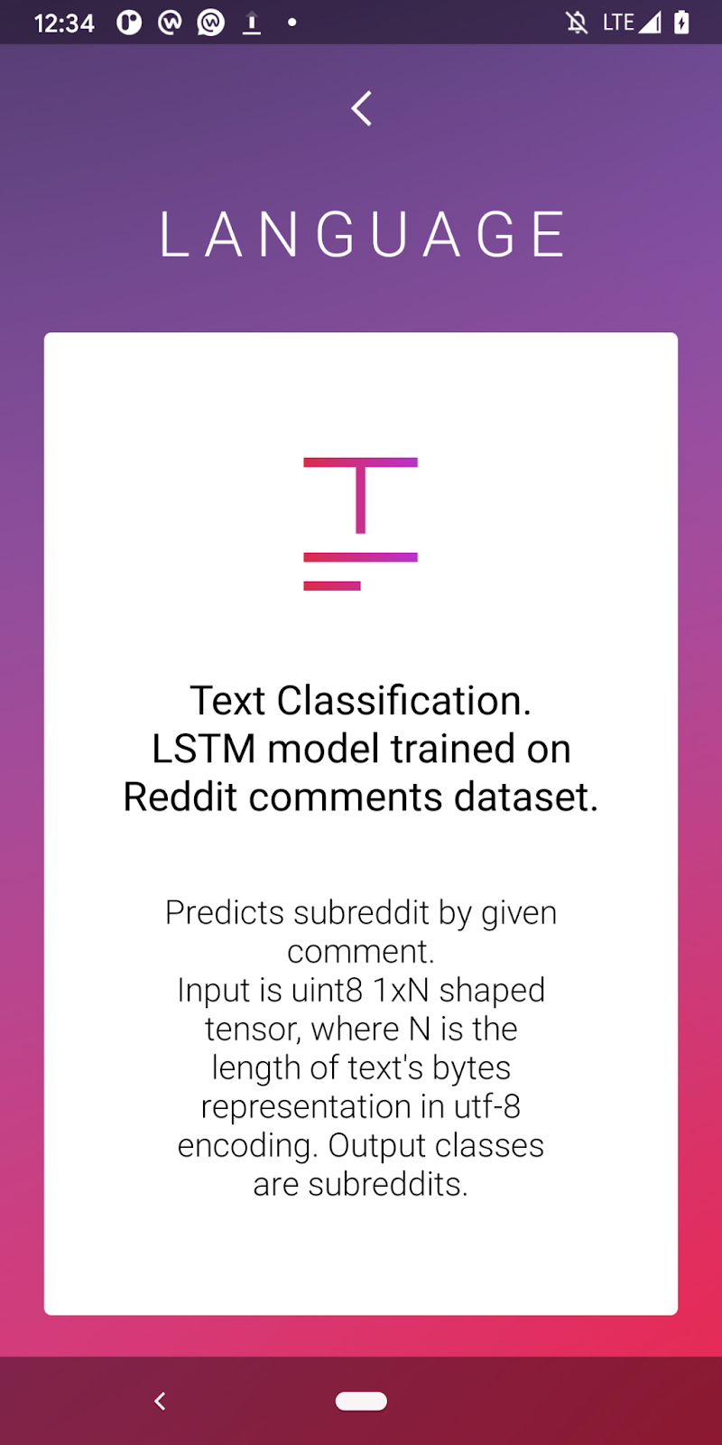 This app demonstrates how to use a pre-trained Reddit model to perform text classification.