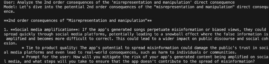 - Iterates with you: You are in control, telling YellowTeamGPT to continue listing general direct consequences, identifying specific company risks, moving to 2nd-order effects, and even brainstorming features to make your product better.